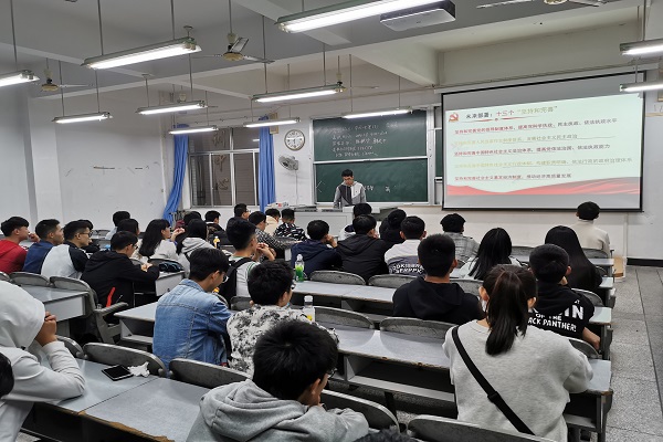 为了贯彻落实党的十九届四中全会精神,让同学们更加深入了解中国的政治制度。11月10日,计算机科学学院(9159金沙申请大厅)组织各班分别于一教、五教的各教室开展以“十九届四中全会公报”为主题的班会。