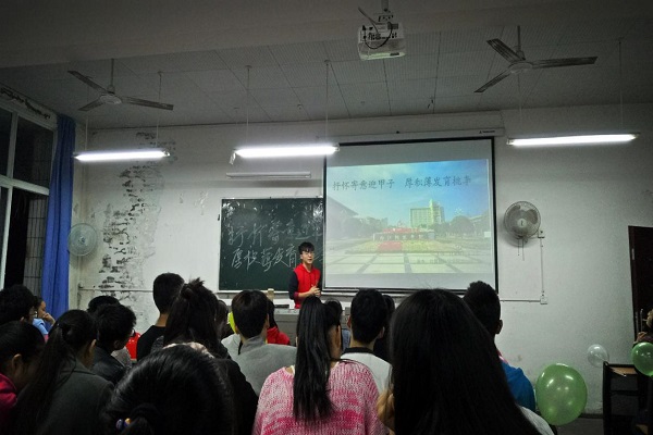 金秋十月,丹桂飘香;十年树木,百年树人。为庆祝内江师范学院建校60周年,全面回顾学校的历史,进一步弘扬“明德、博学、笃行、创新”的校庆精神;让同学们深入了解我校六十年来的风雨历程,缅怀过去,继往开来;培养同学们的爱校意识,抒发爱校情怀。我院各班相继开展以“抒怀寄意迎甲子,厚积薄发育桃李”为主题的班会活动。