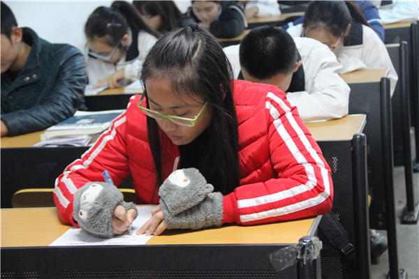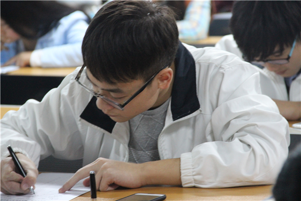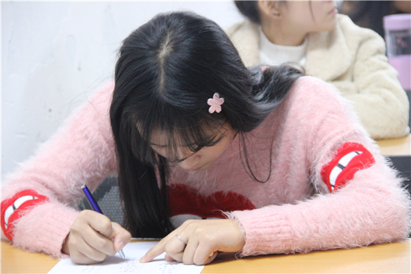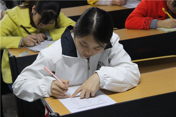 20:10分,此次汉字听写大赛初赛正式拉开帷幕。首先由主持人介绍此次大赛的相关规则,紧接着便是紧张的听写。比赛伊始,同学们以认真勤思的态度书写着主持人念出的词语,他们积极奋战,遇到难题,认真思考,为我们描绘了一副紧张而又精彩的大赛画面。他们的聚精会神,冥思苦想,无不在展现我院学子的才华与智慧。