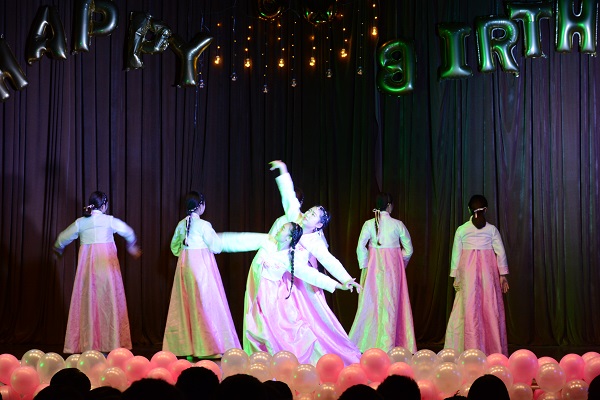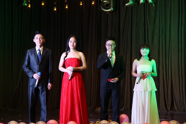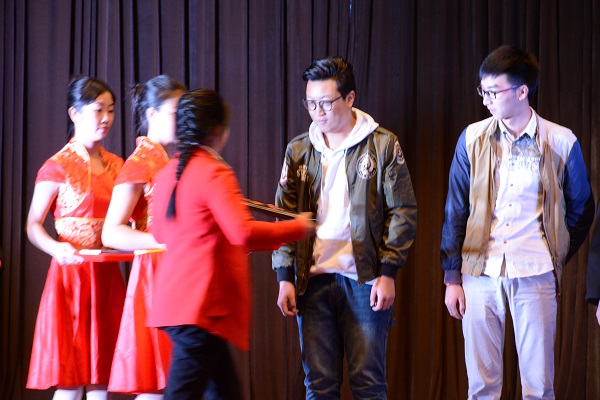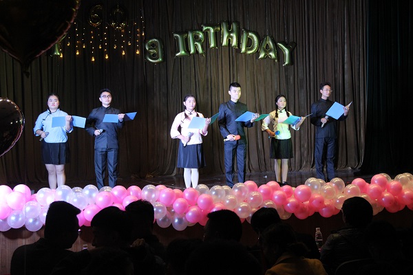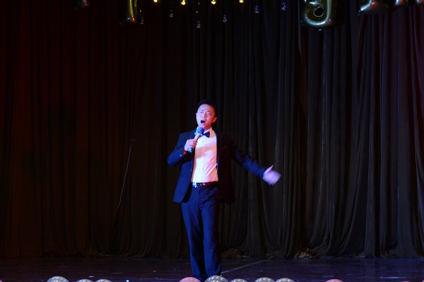 会场的灯光顿时点亮,在现场一片欢呼声中,晚会正式拉开帷幕。首先,开场舞《欢庆》将现场观众迅速融入到了晚会的欢快气氛中,随之欢呼鼓掌。随后,一群月光下的女孩们为我们带来了朝鲜舞《云画的月光》,优美的舞姿令我们陶醉。诗朗诵《劈波斩浪的巨轮》,6位青年学子用充沛的感情表达他们对母校的热爱。接下来是激动人心的微信抽奖环节,现场立即活跃起来,大家纷纷拿出手机刷微信,送上祝福,等待幸运的降临,经过5个数的倒计时,花落谁家?紧张过后,主持人宣布获奖的幸运儿,并由我院辅导员刘丽娜为他们颁奖。追梦青年热情奔放的舞蹈《红色长征》,让我们深深的感受到他们的爱国之心。帅气小伙的吉他弹唱《乌兰巴托的夜》,更是深情的表露。舞蹈串烧《时间流逝》和《ringa linga》,更是让观众沉浸于舞蹈的活力中,久久难以忘怀,伴着荧光棒的挥舞,引起了观众一阵又一阵的欢呼,将晚会推到高潮。紧接着,又到激动人心的微信抽奖环节:签到赢奖品令活动现场气氛高涨,台下一片欢声。