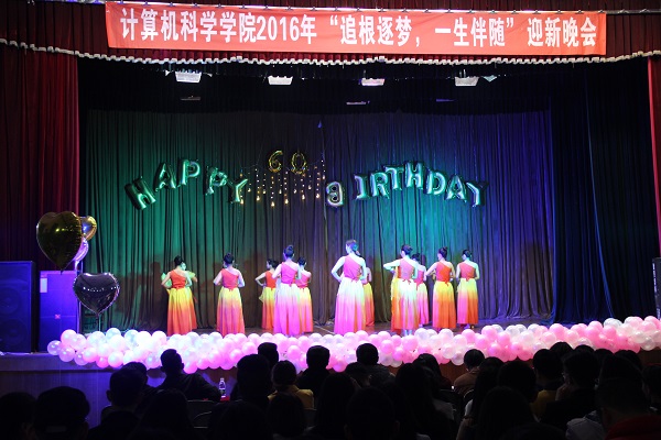 为庆祝内师60华诞暨迎接2016级新生,我院于2016年11月13日晚7时,在西区礼堂举行了以“追根逐梦,一生伴随”为主题的迎新晚会。计算机科学学院院长刘益和、计算机科学学院教学办主任陈晓燕、计算机科学学院辅导员李倩倩、吴昊、刘丽娜,各班班主任以及部分二级学院代表出席此次晚会。计科学院全体学生参加此次晚会。