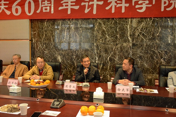 下午2:30,我院党总支书记徐大军、院长刘益和、副院长李尧在新行政楼318会议室里开展了关于“60周年校庆计科学院校友座谈会”的活动,并在活动中发表了重要讲话。在这次座谈会上,院长刘益和、副院长李尧、以及周学文老师讲述了我校计算机科学学院的建院与发展历史,并对我院的未来发展充满了期待,并表示了他们对母校、母校学子和昔日校友深深的祝福。