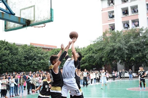 今天的比赛,加油助威的人很多。比赛伊始,伴随着哨声的响起高高抛起的篮球点燃了本届篮球赛的激情,篮球比赛正式拉开了序幕,现场气氛迅速激烈起来,在这个初冬的时候,气温明显下降,队员们以学院为荣,不畏寒风,带着自己的战服和毅力踏上球场,他们在挥洒青春的热血,在球场上奋力拼搏。场外拉拉队更是热情高涨,欢呼、呐喊声声声入耳,篮球比赛现场热度不断升温。篮球队员们凭着娴熟的球技在篮球场上挥洒自如,他们与队友一次又一次默契掩护、传球,找准空隙一次又一次的投射,伴随着观众的加油和呐喊声,友谊对双方抢球、断球、防守、进攻,默契的传球和激烈的配合迎来了场下观众的阵阵欢呼。