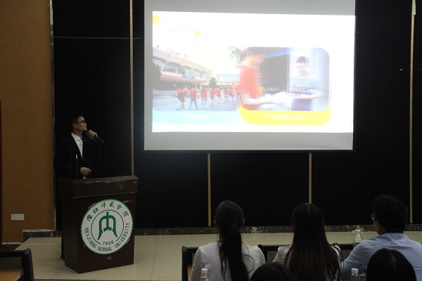 会议伊始,由主持人宣布会议开始并介绍到场嘉宾。首先是:五个团队代表先后向大家汇报实践经验及成果,给师生们讲述实践过程中的细节,并展示相关照片,她们精彩的演讲和生动的PPT演示赢得了全场师生的阵阵掌声。