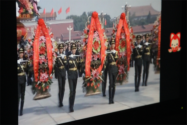 随着音乐声的响起,映入我们眼帘的是那一列列步伐整齐、气宇轩昂的官兵。他们神情庄重,带着对烈士的敬意踏步向前,当我们都欢呼雀跃着国庆的到来之时,却忘了那些为了人民利益而牺牲的烈士们,忘了长征时二万五千里长征的艰苦。在科技日益发达的今天,随着大量信息的涌入,我们已习惯性的麻木,对周围的事物选择了不闻不问。可是,9月30日是一个特殊的日子,是一个让人不容忽视的日子——烈士纪念日。正是因为有他们的无私奉献、不计回报的付出,才有了我们现在国富安康的生活;正是因为有了他们的努力,才造就了现在的国庆佳节。