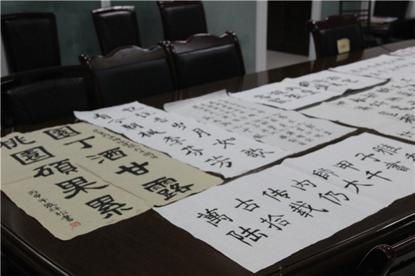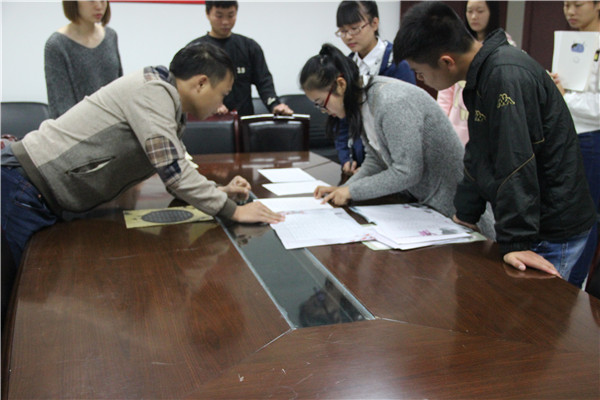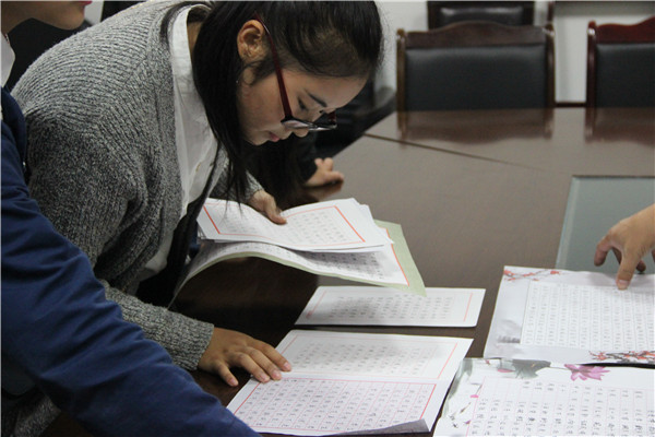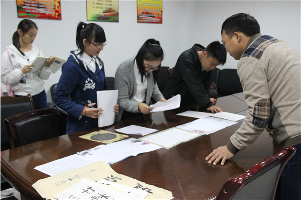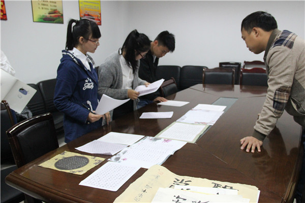 2016年10月14日17:30,此次校庆六十周年书法选拔大赛于行政楼211拉开帷幕。我院辅导员吴昊,书法协会副会长喻茜茜,团总支副书记杜柳,学生会副主席张雪以及部分学生干部参与此次评选。