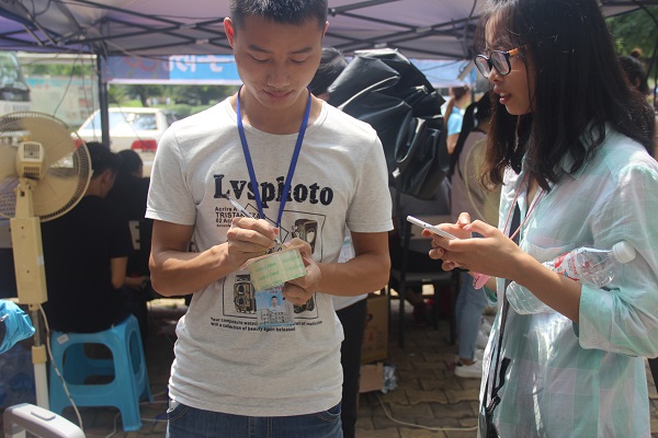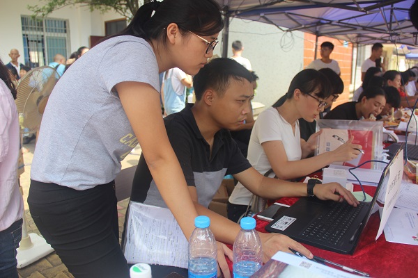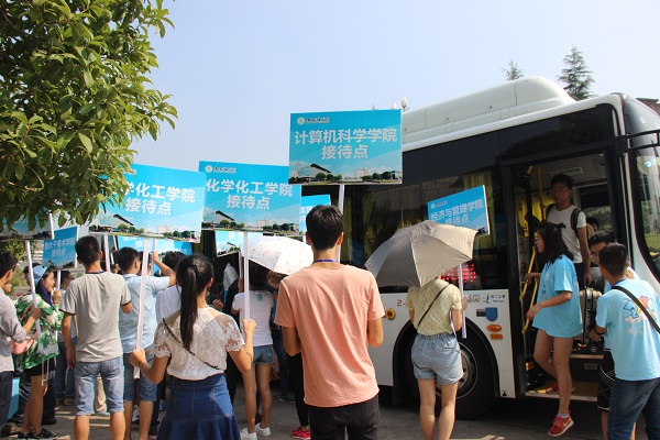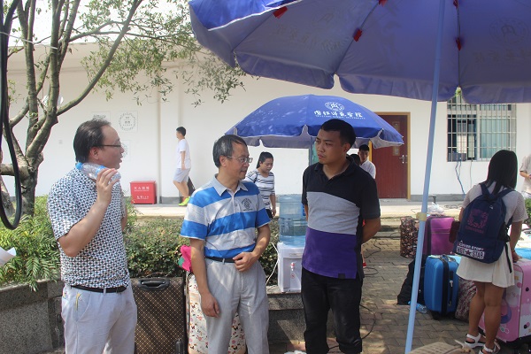 在天一广场,音乐楼前设立的接待点,新生和家长一到点,众多的迎新志愿者马上微笑着迎上去:“你好”,“欢迎来到内江师范学院计算机科学学院”,并“抢”下新生和家长手中沉重的行李。炎炎夏日,我院党总支书记徐大军,院长刘益和来到迎新现场安排工作,亲力亲为的工作态度为我们树立了良好的榜样。