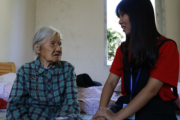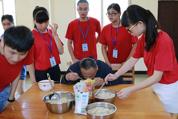 面籽饺子,便是炒面籽做馅的饺子,老人们生活的那个年代便是面籽替肉的做着饺子。现在,一提到面籽饺子,老人就忍不住拉着志愿者们的手说起了方年的生活。志愿者们下了电影《建党伟业》带过来用电脑放,老人们激动不已,话匣子一打开就不忍心关上。等吃完饺子后,志愿者们洗了碗,收拾了厨房便要走了,他们还没吃饭呢,下午还要去支教。几个老人互相搀扶着到门口送志愿者们,几个女生走的时候一个没忍住,背对着老人便哭了出来。