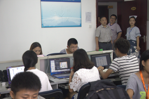 为了加强学生专业实践过程管理,提高人才培养质量,更加了解学生暑期社会实践情况。2016年7月19号,内江师范学院计算机科学学院党总支书记徐大军,副院长李尧、唐年庆,辅导员吴昊一同前往成都高新区国信安基地看望在此专业实践的学生