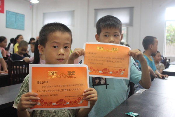 在学生的欢笑声中时间跑得是如此的快,就像羞得过隙的白驹,课程一下子就结束了。学生和我们一起,轻轻的、静静的拂拭着留下的痕迹。桌子板凳放回原位,人与课本带回家……打扫完一切之后,学生送着我们出了教室、出了小巷、到达等车的街道。