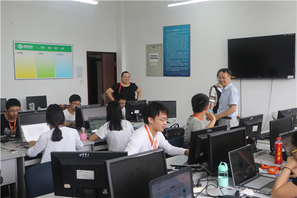 为提高人才培养质量,加强学生专业实践过程管理,了解学生暑期社会实践情况,2016年7月14号,内江师范学院计算机科学学院院长刘益和前往成都高新区第三十所视察在此参加社会实践的我们。