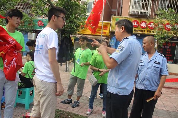 陌生的小区和陌生的居民,不过对于队员们来说早已习以为常,我们的服务点设在一棵大树下,树荫浓密,几缕稀疏的阳光照射下来,景色怡人,队员们在这样的环境下工作显得更有干劲!