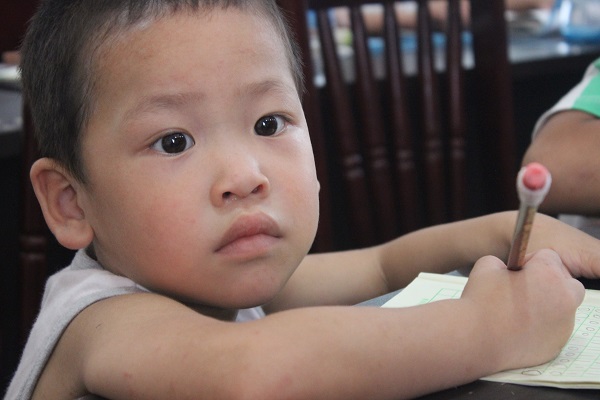 08:30,同学们相继在教室坐下,开始了一天的学习。第一节课,我们的张雪老师教孩子们舞蹈《可爱颂》。一个个小可爱在音乐的律动下,扭扭腰,卖个萌。一切都显得那么和谐。接下来是我们的书法课。书法不仅是中华民族的文化瑰宝,而且在世界文化艺术宝库中独放异采,在今天的生活中仍生机勃勃。书法精品内涵丰富、博大精深,蕴自然的性灵、溢美的芬芳、凝智的妙趣深深的影响着我们。下午我们继续辅导大家完成暑假作业。并在课余时间玩起了猜字谜,脑经急转弯。所有孩子高高举起他们的小手,抢着要回答问题。在大家的打打闹闹中,又到了孩子们离开的时间,我们忍不住要感叹世界最不经用的就是时间!