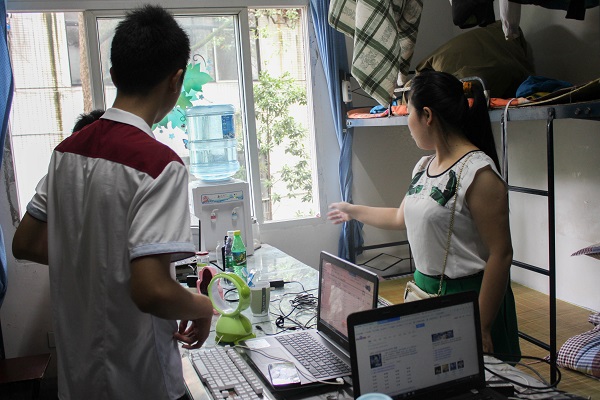 另一方面,李倩倩老师一进寝室,就开始询问男生,“还需要什么帮助?”并叮嘱他们留宿期间注意安全,离校之后关好门窗等。在李老师的简单问候后,整个氛围变得十分和谐融洽,大家都开始笑着交流。
