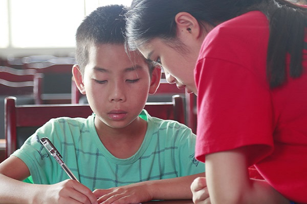 第一天的经历让大家都有些疲惫,经过一晚上的休息调整后,志愿者们早早的起来了,年轻人的朝气蓬勃在这群人身上展现的淋漓尽致,他们将用热情去完成的这次活动。活动分两队进行。九点正式上课,红草村的队伍七点刚过就到了上课的教室,而八点半之前15个孩子已经全部到场,在上课前大家一起玩了“真心话大冒险”的游戏,笑声很快的充满了整个教室。第二天红草村和九间楼村的孩子们分别观看了前三年支教队伍与孩子们的合影照剪辑的VCR,进行了“在黑暗中寻找梦想”的作画活动,并且做了超轻黏土的作品,还拍了视频给前三年支教队伍的哥哥姐姐们。