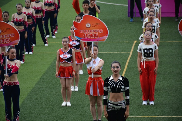 本次比赛代表我系参赛的是花球啦啦操。下午16:00,他们已整装待发,时刻准备着上赛场一展计科学子的风姿。经过前面队伍的表演等待,16:45,终于迎来我院健美操队的队员一展风姿,看,他们着一身红色和白色交错的靓丽服装,整齐划一的动作,信心十足的微笑,激情四射,活力无限,再加上动感的音乐,给我们带来了一场震撼人心的视听盛宴。