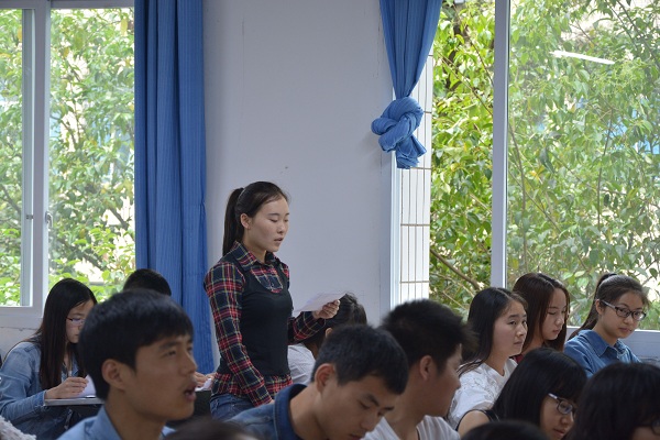 最后转正预备党员宣誓,他们声音高亢激昂:遵守党的章程,遵守党的记录……久久回荡在教室里,真正展现出了对党的崇高敬意。学生党支部书记李倩倩、吴昊老师对大会进行了总结,表示希望以后在各种有益活动中多看到党员身影,更多的人投身到党的事业:对党的认识更加明确,对党的基本知识更加了解,入党动机端正,对共产主义信念更加坚定。