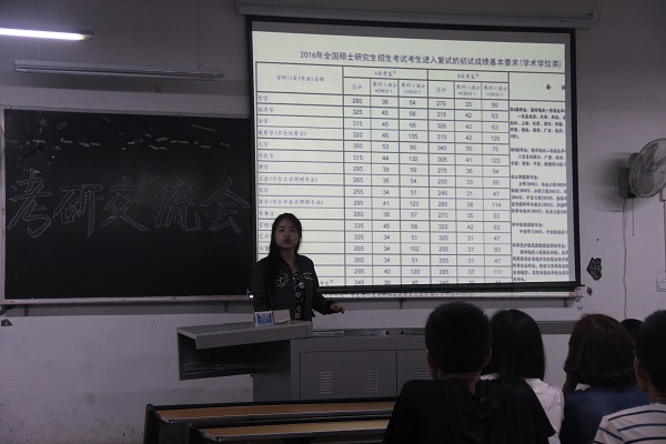 为了进一步提高我院学子的考研热情,明确考研目标,掌握相关考研技巧,了解更多考研信息,2016年4月14日晚19:00,由我院团总支、学生会主办,学生会学习部承办的考研经验交流会在一教207教室举行。本次交流会诚邀在考研中成绩优异、经验丰富的12级师姐侯红英、龚艺;并由学习部部长何吉祥主持了此次会议。