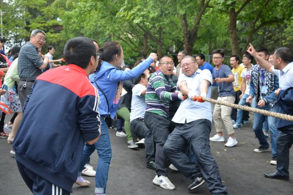 上午10:30左右,山顶球场上呐喊声此起彼伏。看,那是计算机科学学院在与其他学院进行拔河的角逐。我院党总支书记徐大军、副院长唐年庆身先士卒参加比赛,同时,院长刘益和为计算机科学学院的老师们加油助威。此次校运会教职工拔河比赛,采用两局制的比赛方式。首先进行的是计科学院对战外语学院,其次是计科学院与音乐学院的角逐。比赛过程中,我院老师,齐心协力,奋力拼搏;当然啦啦队也毫不逊色,富有节奏感的呐喊更为此次拔河增添了几分紧张的色彩。随着裁判的一声哨响,我院老师代表队齐声呐喊,双手紧握绳子,身体往后倾斜,全队齐心协力,上下配合。眼看着绳子中间的红色标记在中线处僵持许久,“一二,加油,一二,加油”,我院老师们又一次猛得发力,绳子过线,计科学院胜。全场欢呼雀跃,为计科胜利呐喊吧!此次比赛中,老师们的精彩表现,为我院接下来的比赛奠定了坚实的基础,起到了标榜的作用。