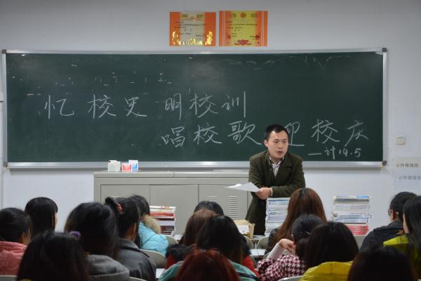 内江师范学院人杰地灵,百家争鸣,百花齐放,时值60周年校庆到来之际,为回忆校史,铭记校训,我院各班于2月28日晚自行组织开展了以“忆校史、明校训、唱校歌、迎校庆”的主题班会活动,旨在新学期激发同学们的青春正能量,倡导同学们将社会实践与理论知识相结合,产生忧患意识,畅谈青春的梦想。