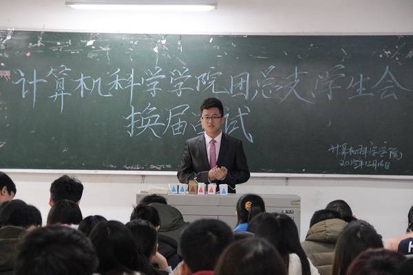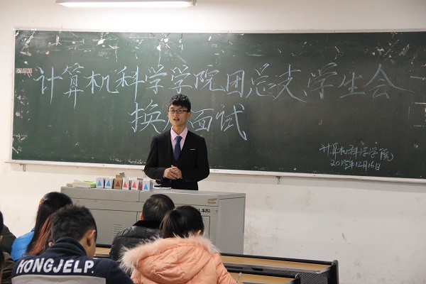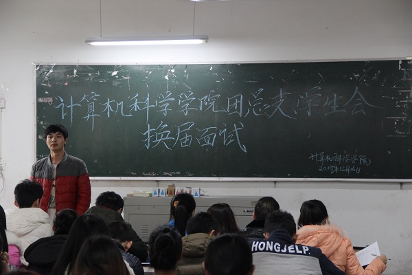 为落实我院学生会精神,遴选优秀人才加入学生会主席团队伍,推动学生会进一步发展,计算机科学学院第十六届团总支、学生会换届面试于12月16日中午在第一教学楼105教室举行。担任此次面试的评委包括党总支书记徐大军,团总支书记李倩倩,辅导员吴昊,主席团成员及各部门干部干事。