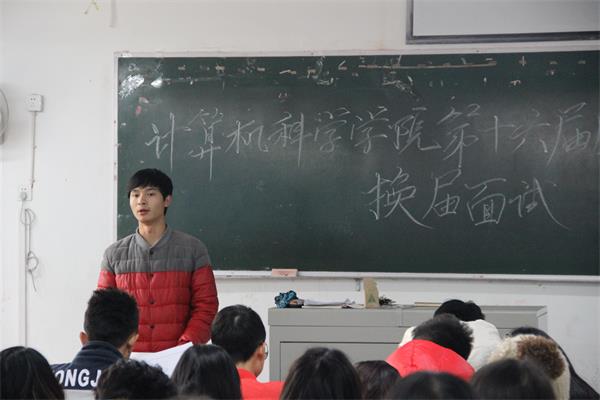 风雨兼程历练几度春秋,春日嫩芽终成顶天密林。为了加强我院学生会干部队伍的建设,促进学生会工作进行顺利,计算机科学学院第十六届团总支、学生会部长面试选举大会于12月17日中午在一教205顺利举行。担任此次面试的评委有团总支、学生会主席罗伟,团总支副书记魏时职及各部门干部干事。
