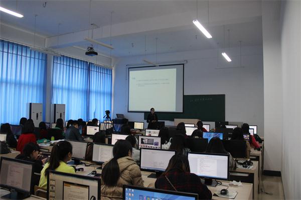 1024x768 为检验教育实习成果,增强师范生实践应用能力,为师范专业学生提供学习交流平台, 11月23日下午2点半,计算机科学学院在新实验楼204开展了2015年教育实习汇报讲课比赛。副院长唐年庆,专业老师于永彦、陈晓燕、李游、胡晓蓉、张艳琼、张凯老师担任此次比赛评委,2013级1班全体同学观摩了此次比赛。