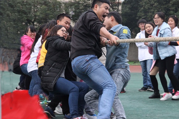 同时,下午四时,团体赛也是田径场上浓墨重彩的一笔。听,远处传来了阵阵铿锵有力的喊声“一二,一二”。走近一看,那是我院一班的同学在与三班的同学进行拔河比赛,看他们个个斗志昂扬,用他们的汗水为我们讲述了团结的含义,他们顽强的毅力与拼搏的精神让每一个人感动!