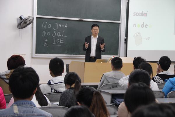 为进一步提高同学们的专业知识技能,不断适应高速发展的信息时代和职业教育发展的新形势。11月19日下午16:30,我院在五教南401开展了一次以“码农新时代——大数据时代下互联网高级技术人才知识架构”为主题的学术讲座。本次讲座的主讲人是达内时代科技集团的副总裁李翊老师。出席本次讲座的有我院副院长李尧、我院学工办主任李倩倩以及我院的部分老师,同时,2014级1、4、5班全体同学参加了此次讲座。