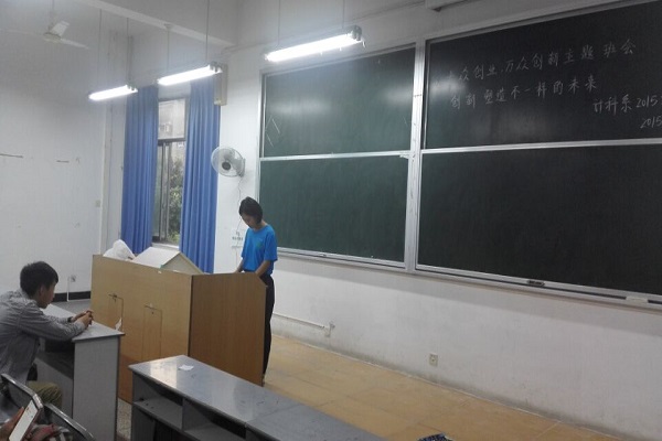 为配合招就处开展大众创业、万众创新活动周的活动召开主题班会。我院大一各班 10月18日晚开展以宣传“普通高等学校大学生就业创业优惠政策”为内容的主题班会,班会以多种形式开展,其中个别班级运用多媒体技术,结合PPT和演讲与全班学生进行互动。全体学生参与其中,来感知高校就业政策。