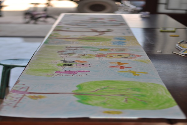 午饭过后,内江师范学院“雅安万古行”分队进行午休后再次进行支教,为了激发孩子们的爱国热情,增加保家卫国的意识,志愿者为孩子们播放了抗日的动画片王二小,并为孩子们详细的讲解第二次世界大战的过程,使大家更好地了解了这段历史。九间楼村的队员们给孩子们开展了梦想大画卷活动,让孩子们用自己的双手画出他们的梦想,孩子们积极性很高,纷纷在画纸上画出自己的梦想,之后进行了跆拳道和舞蹈的训练,房间外下着大雨,但孩子们还是快乐的进行训练,一刻不放松,活动结束,大雨也停了,看到阳光从云中照射出来,孩子们下课了,结束了当日进程。