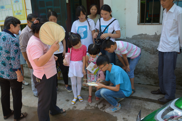 早上六点半队伍准备就绪,开始吃早餐。8点,在步行三十分钟后,队员到达指定地点开始教学。这次支教活动得到旋塘湾村的大力支持,据悉,队长何美良与部分队员在前一天与村干部商量后,旋塘湾村书记杜宗斌,村长杜文金随即联系村上需要辅导的孩子参与此次义务支教活动,并把村委会会议室作为此次支教地点。