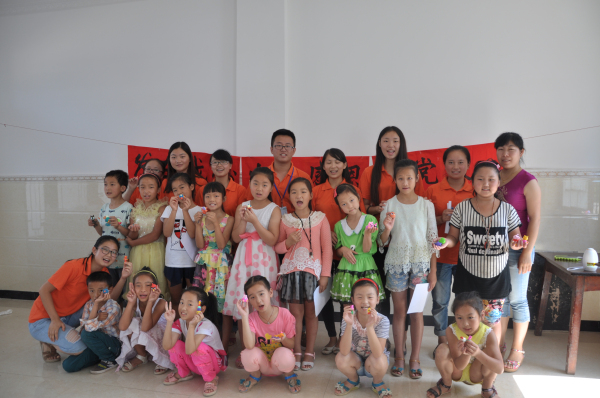 中午稍作休息,队伍再次踏上了支教之路,下午九间楼村的孩子人数已达35人,对于孩子们的认同、欢迎,队员又一次被深深感动了,队伍进行了折纸活动,孩子们心灵手巧,学习的很认真并一一展示了他们的成果,随后孩子们分成了两组分别进行了跆拳道和舞蹈的教学,最后孩子们和队员们一起放飞纸飞机,快乐的结束了今日的活动。红草新村方面,针对男孩和女孩兴趣爱好不同,志愿者们也因材施教,一组志愿者教女孩子们唱英语版的小星星和李叔同的送别,孩子们很积极地完成了教学,而男孩子就相对来说更活泼一些,因此另一组志愿者选择了组织孩子们玩象棋,五子棋,跳棋,让孩子们能够静下心来。
