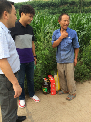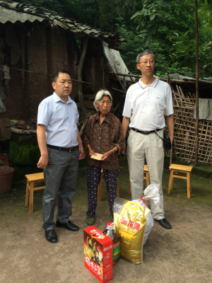 6月19日端午佳节前夕,计算机科学学院党总支书记徐大军、副院长李尧、总支委员苟全登、学生第二支部书记吴昊带领2015年新发展和转正的五名学生党员代表来到资中县银山镇平安寨村慰问结对帮扶对象,为金述芳和胡祥高两位老人带去了端午节的问候和爱心。
