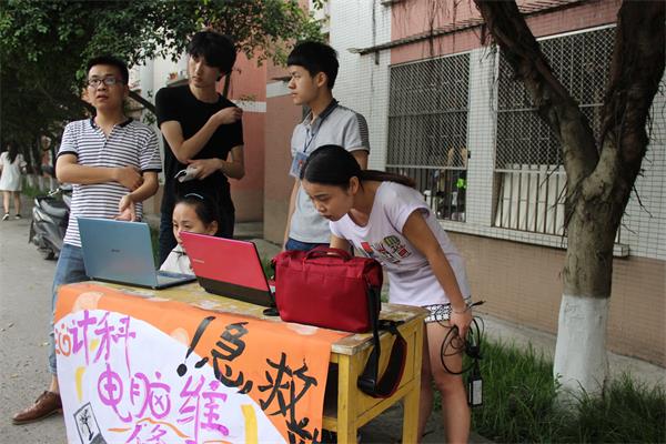 5月4日,我院义务维修队在一、四、五食堂分别设立了维修点,利用下课和午餐时间为同学们解决电脑问题。前来的同学们咨询维修的同学络绎不绝,义务维修队员们热心的维修、细心的解释,并向他们介绍了一些电脑日常保养方法:定时清理、定时检查、更改存储路径。在采访中,我们看到维修咨询场面十分热闹,同学们信任我院队员的维修技术,在等待的同时还动员其他同学前来咨询维修。