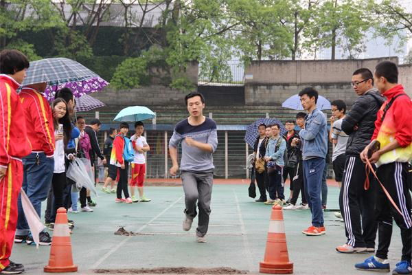 淅淅沥沥的雨,不能挡住老师们的脚步。下午2:30分,进行教工男子组垒球掷准预赛。张利强老师没赶上第一轮的投掷,失去了一次机会。不过在第二轮中,神奇的一掷,1.5米的成绩,在场的教工与同学都拍手叫好。紧接着,一位老师奇迹般的命中了旗杆,那完美的弧线似乎显示在我们眼前,那一幕就像时空冻结一般,如此飘逸。第三轮又来了,这一次,大家好像都找到了手感,力量与弧线的完美结合,1.25米、1米、0.75米······好成绩纷纷上演。无可奈何,张利强老师最终以1.5米的成绩惜败,没能进入决赛。