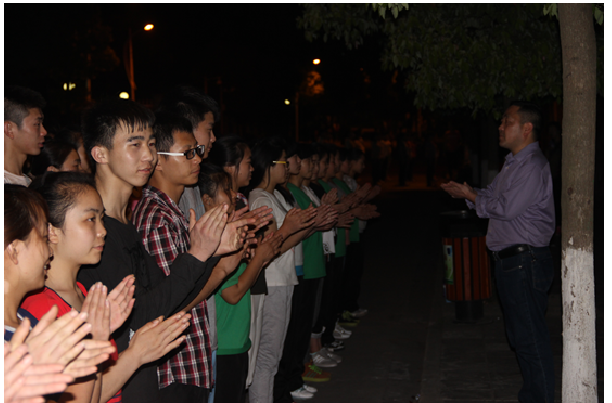 备训期间,同学们从20点50分开始训练,虽然训练动作重复机械,训练强度逐日增加,但是同学们的热情却日益高涨。训练场上,口号嘹亮,步伐有力,队列整齐,无不在体现着青年人昂扬向上、自信阳光的精神面貌。