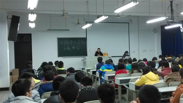 为了加强我院学生的安全意识及考风考纪建设,12月21日晚七点在五教北104,我院辅导员刘丽娜老师为13级全体学生开展主题班会。