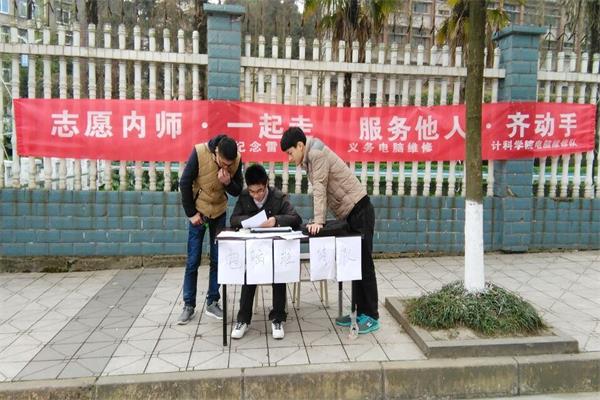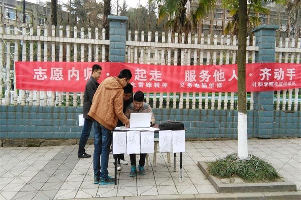 宣传活动在热火朝天地进行着,同时,电脑义务维修服务队也在积极的为有需要的同学们提供服务,他们运用自己的专业知识为大家解决电脑方面的疑难杂症,并为前来咨询的同学们耐心讲解电脑存在的问题,并一一解决。问题解决了,前来咨询的同学和电脑义务维修服务队队员们脸上露出满意的笑容。