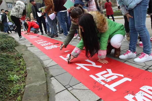 为达到良好的宣传效果以及让更多的人参与进来,爱护我们的家园,学生会成员们早早来到现场,拉起横幅,播放音频,给过往的同学们发放关于在生活中如何“杜绝雾霾,从我做起”的知识宣传单。这些生活小细节主要包括:尽量减少吸烟,节约用纸,使用清洁环保的能源,多使用公共交通等等;对于我院举办的此次活动,同学们都积极参与,并踊跃地在横幅上留下自己的签名,他们表示在以后的生活中,将会用自己的行动来践行“爱护家园,拒绝雾霾”的宣言。