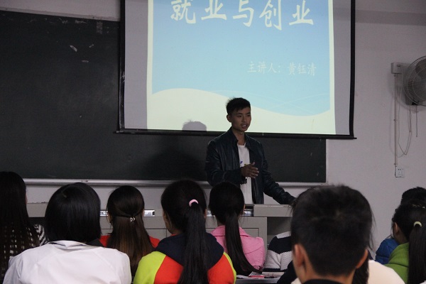 为了帮助我院大学生正确认识自己,准确有效地确定就业方向,尽快地让他们在思想、行动上早做准备,指导大学生如何走好从大学走向社会的重要一步,11月7日晚7点整,计算机科学学院08级毕业生黄钰清作为一位成功人士的代表在我校一教201举行了本次讲座。黄钰清主要为我们讲述了他创立“名俱扬影视广告有限公司”的历程与前景,以及他创业成功的诀窍。他用生动诙谐的言语、鲜明的事实以及通过与观众的互动为我们总结出了“成功的必备元素就是坚持与折腾,而坚持与折腾的前提则是要有一个明确的目标,要懂得抓住机会,自立自强”。