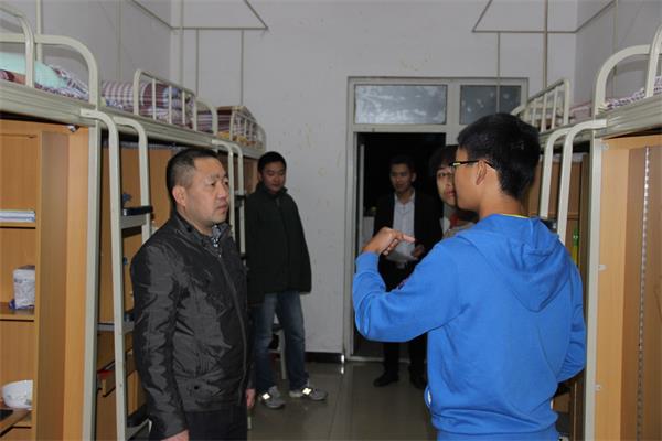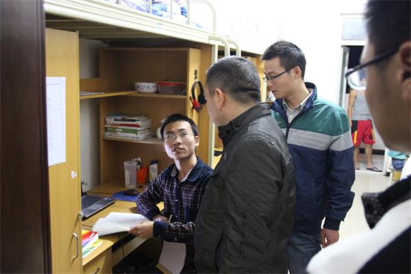 11月5日,计算机科学学院党总支书记徐大军,团总支书记李倩倩,辅导员吴昊、刘丽娜,2014级3班班主任冯松军及部分学生会干部对学生寝室进行走访检查。