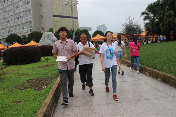 上午10点,内江师范学院校党委书记马元方、校长谢峰先后来到我院新生注册报到现场检查迎新工作。当两位校领导了解到我院新生已报到近120人,报到率达三分之一时十分高兴,对工作人员的辛苦工作表示了慰问,要求迎新工作人员再接再厉继续做好学生接待工作。