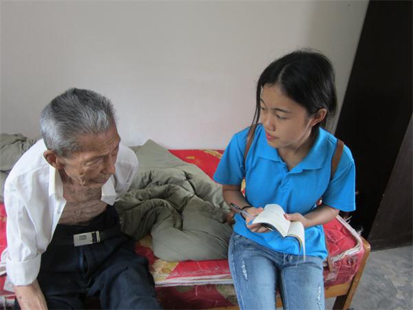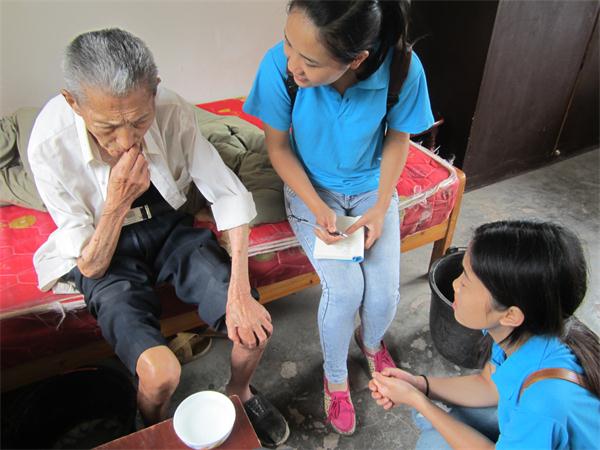 7月11日,前一夜的小雨,给炎热的7月降了温度,凉爽的早晨里,今日天空俏皮的露出淡淡微笑,美丽的蓝色天空下,志愿者们的衣服也是被染成了蓝色。没有了孩子们天真的欢笑与打闹,也没有了教室里孩子们学习的可爱样子。没有了孩子们与志愿者们的小游戏,也没有志愿者们在“小基地”对孩子们的安全的时刻担心。孩子们都回到学校领学习成绩了,“为爱起航”义务支教服务队在韩雯的带领下来到了前日联系好的靖民镇敬老院。