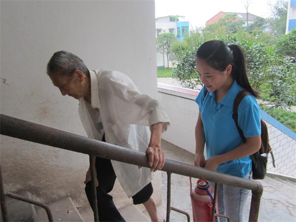 郑玉书老人,82岁,日月如梭,没有子女的孤寡老人来到敬老院已经10余年,志愿者见他提着水壶迈着不快的步伐,帮助他进屋子。屋子里有两间床,但老人却是一个人住在这里,志愿者们询问老人在敬老院是否如意时知道,老人在改革开放时候是搞文娱方面的,见到屋子墙壁上挂着二胡,“我们以前经常回到乡场演出”老人说道。老人因为腿脚不方便,无聊时会拉二胡怀念过去。