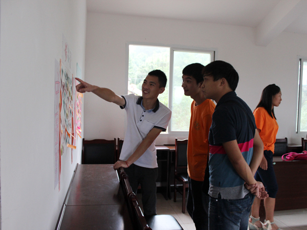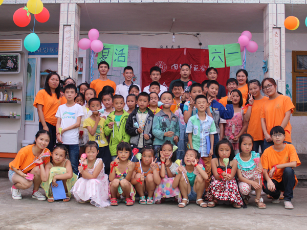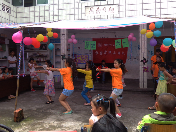 在九间村孩子们朗朗的读书声中,我们迎来了内江师范学院计算机科学学院辅导员吴昊。吴老师的到来让孩子们惊喜万分,他们用一曲《感恩的心》触人心底,在细细的手臂的挥动间传达出说不尽的感谢之情。在志愿者们的指导帮助下,孩子们将自己的理想写上手中的风车,对着梦想的风车许下神圣的愿望。志愿者们也为孩子们精心准备了一首《小苹果》。 “变成蜡烛燃烧自己,只为照亮你。”这是歌词中志愿者们最真实的内心写照。 活动接近尾声,九间楼村志愿者们压抑着离别的伤感,静静诉说着对孩子们的不舍。活动最后,吴昊老师,志愿者,孩子们集体留影纪念。