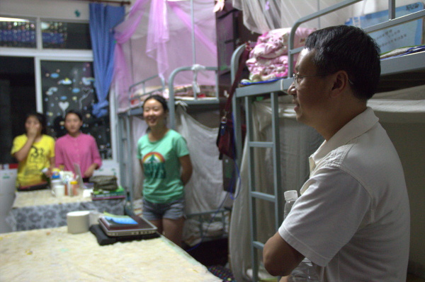 一进寝室,院长刘益和就开始询问女生,“行李是否收拾好了?还需要什么帮助?”在院长的简单问候后,整个氛围变得十分和谐融洽,大家都开始笑着交流。随后,党总支书记副徐大军告诉大家搬寝室的注意事项,希望大家能高高兴兴地住进新的寝室,并要注意用电安全。副院长李尧看着大家,谈起了他们住校的回忆,他说道,现在的住宿条件比较艰苦,但希望大家能够克服并坚持下去。并好好珍惜室友间的友情,以后分开了,会有新朋友,但也不要忘记老朋友。副院长唐年庆表示,大家在搬寝室遇到什么问题都可以老师们联系。