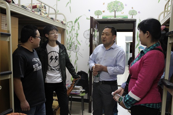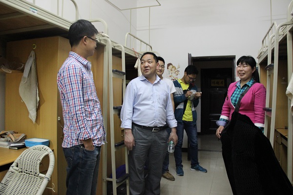 4月25日晚,计科学院党总支副书记徐大军,团总支书记李倩倩,辅导员吴昊、刘丽娜对学生寝室进行走访检查。