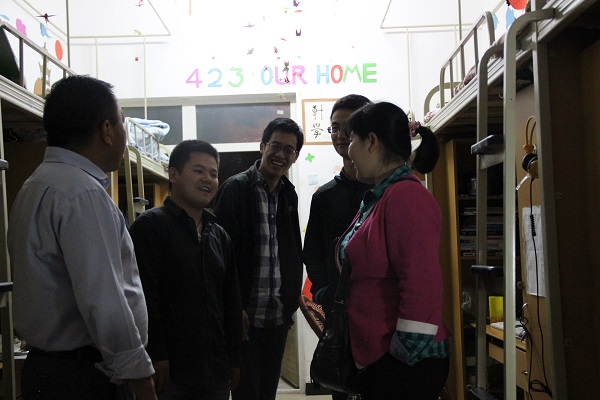 晚上9点,徐书记一行在结束了会议后,分头走访各年级学生寝室。