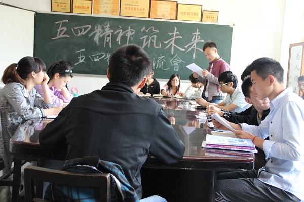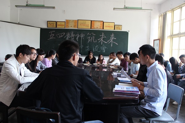 会议伊始,团总支副书记孔毅对五四运动做了简单的介绍,其中包括五四运动的产生和五四运动精神两大方面。他说到,五四运动的核心是“爱国、进步、民主、科学”,它不仅给我们留下了宝贵的精神财富,更是鼓励并激励我们一代又一代的年轻人。随后,与会人员就五四精神纷纷结合自身生活实际进行了深入交流,阐述自己在今后工作和学习中的做法。